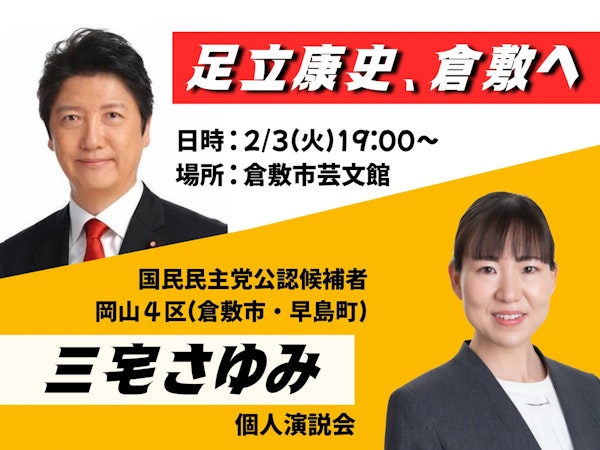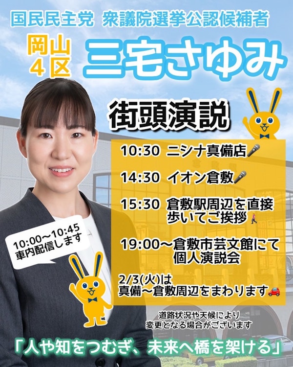 2月4日 街頭演説予定(応援弁士:礒﨑議員)